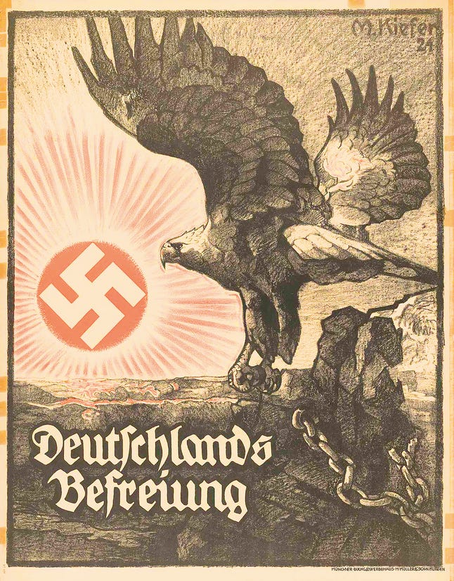 The Nazis deployed every possible weapon in the German nationalist arsenal, from the newest “science” to the oldest myths. Heinrich Himmler read Tacitus’ Germania in 1924 and henceforth became obsessed with it, vowing to resurrect Germanic society in its image.