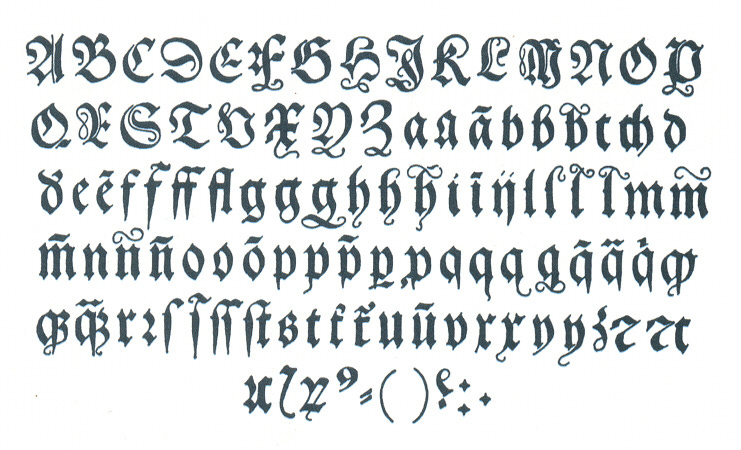 Soon, the notion of blackletter faces as being the domain of the Germans was deeply entrenched. This had evolved beyond a mere regional preference. Blackletter type, especially Fraktur, had come to be seen as the appropriate vessel for the German language and culture, just as Antiqua had arisen and spread as the proper vessel for Renaissance thought. Thus, German printers customarily carried at least two sets of characters—Fraktur for the bulk of their work, and Antiqua to be inserted in the case of any foreign words used. Never mind that Germans hadn’t had much to do with inventing these letters—they owned them now.