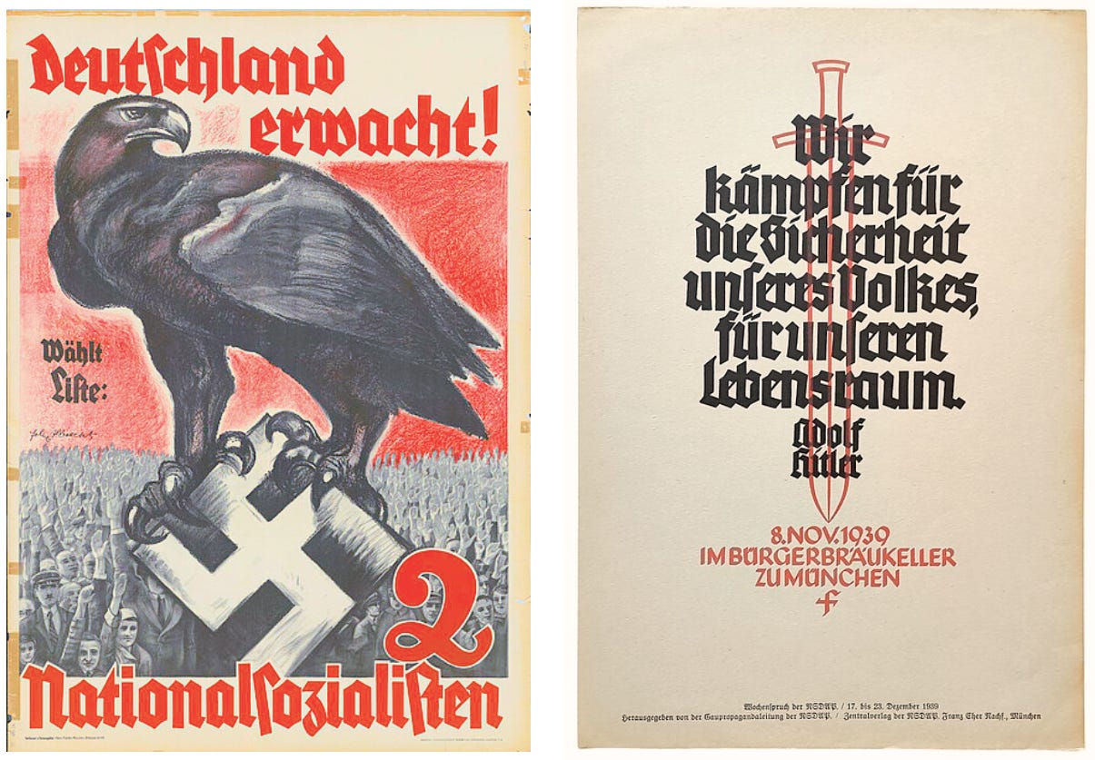 The Antiqua-Fraktur dispute slotted in nicely to the Nazis’ imagined dichotomy of noble German Aryanism versus perfidious Jewish globalism. It is not difficult to understand why the Nazis loved their “Gothic” fonts or why early Nazi posters and leaflets were often typeset in Fraktur styles. Printers were warned off using “Roman” letters, the prevalence of which in newspapers was taken as a sign of Jewish control over the media. To everyone in the Nazi party, it seemed self-evident that Gothic writing was best suited to their cause. Everyone, that is, except Hitler.